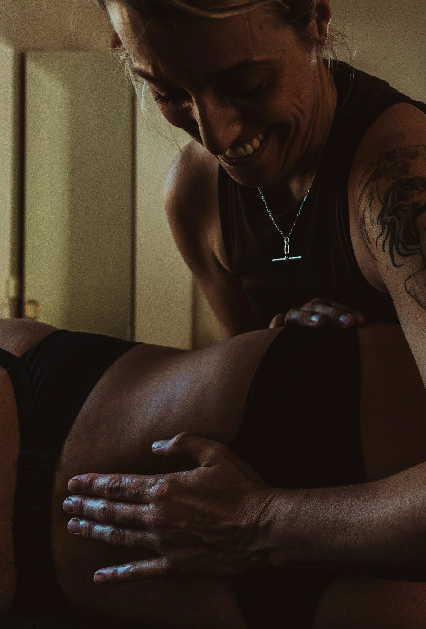 External bodywork, grounding and breath are part of every session. Internal work - if chosen - is gentle and slow. It usually involves light contact along the posterior vaginal wall, working with tissue responsiveness and nervous system settling.